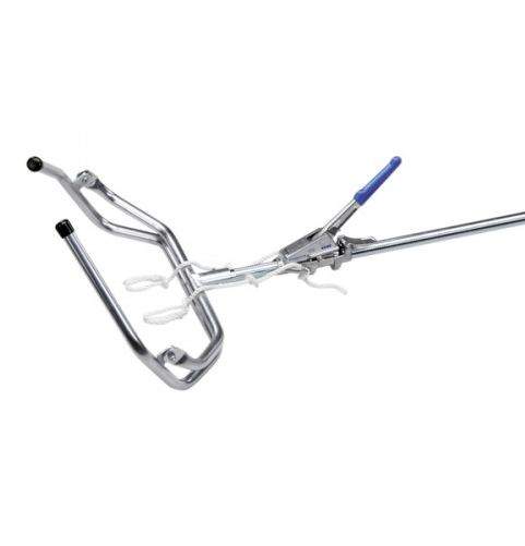 Le mécanisme 2060, en aluminium, permet un contrôle graduel de la traction. Ce contrôle garantit la sécurité dans les situations les plus délicates. Comme tous les autres modèles HK, il est possible d’exercer une rotation autour du tube ; il y a une poignée bêche et deux crochets d’accrochage pour une traction simultanée. Elle est débrayable à tout moment même sous traction. Le nouvel appui permet une adaptation sûre sur le bassin de la vache et empêche les dérapages. Il garantit une tenue et une efficacité optimale.
