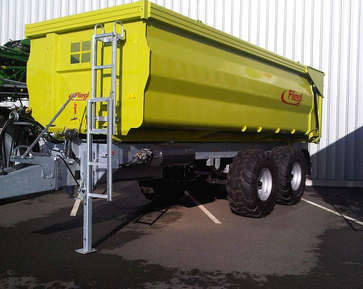 La gamme de bennes agricoles Fliegl est constituée de 5 modèles 2 essieux d'une capacité de 16 à 28 tonnes de PTAC. Cette remorque agricole Fliegl est d’une conception assez innovante car la caisse est pliée sur les cotés afin d’éviter les bandeaux de renforts. Cela permet d’obtenir une caisse avec un design plus actuel et cela permet aussi de gagner en poids à vide. De série, cette gamme de véhicule est équipée comme les remorques à fonds poussant d’un châssis galvanisé, d’une suspension de flèche hydraulique et d’essieux BPW homologués grande vitesse en Allemagne.