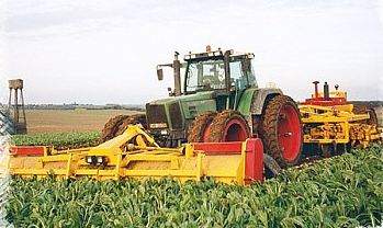 L’ effeuilleuse JPS (Jean-Paul Soyez) se compose de deux rotors de 5,40 m (12 rangs à 45 cm). Elle est portée à l'avant du tracteur, et entraînée par la prise de force avant 1000tr/min.