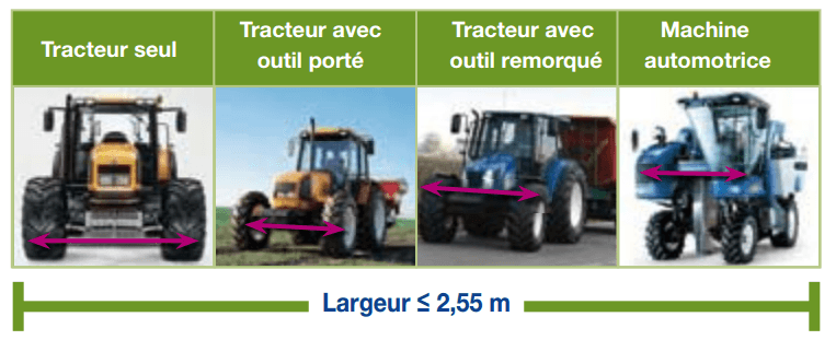 Les règles concernant le gabarit des tracteurs et des automoteurs :