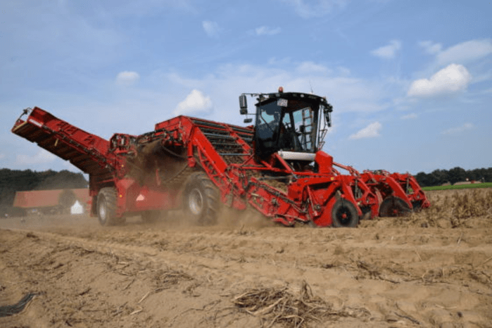 Avec la VENTOR 4150, il a été pour la première fois possible de réaliser le principe d'une SE sur une automotrice à 4 rangs ayant une homologation routière tout en doublant ainsi ses performances par rapport au système SE à 2 rangs. Ceci n'a été réalisable que par une division du flux du produit combinée à un mécanisme de repliage bilatéral des séparateurs à tapis à tétines innovant lequel a permis de réduire la largeur de la machine afin de respecter les dimensions de transport autorisées.