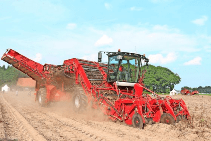 Lors de l'Agritechnica 2017, GRIMME présentera la toute nouvelle arracheuse automotrice à pommes de terre 4 rangs VENTOR 4150, équipée d'une trémie de déchargement d'une capacité de 15 tonnes. Le coeur de cette arracheuse d'une puissance de 530 CV bénéficie de l'intégration du "principe-SE" bien éprouvé, à savoir : tamisage, séparation des fanes...