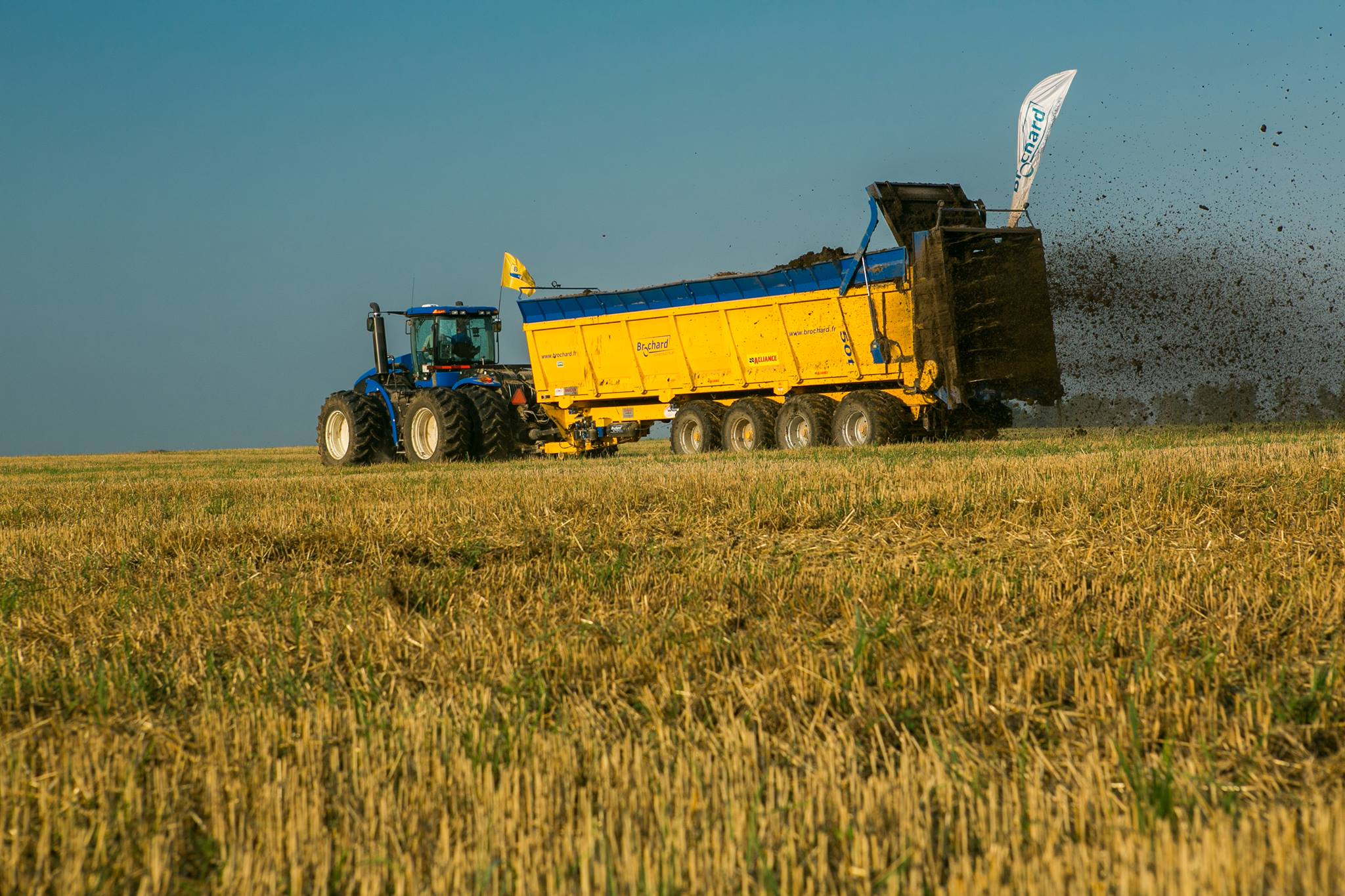 New Holland Ukraine et Moldavie et son partenaire, LLC Alfagro, le concessionnaire agrée de Brochard Constructeur, ont établi un nouveau Record du Monde d’Epandage de Fumier les 31 juillet et 1er août 2014, en épandant 4.217 tonnes sur 221,8 ha en 24 heures. Le puissant tracteur New Holland T9.615 et l’épandeur de fumier Brochard ont réussi cet exploit. Brochard Constructeur a fourni le plus grand épandeur de fumier au monde, avec une capacité de 50 tonnes, mais qui était chargé à 65 tonnes pendant le Record du Monde. Il a été conçu et construit spécialement pour cet évènement et peint aux couleurs de New Holland. Alain Bellion, Président de Brochard Constructeur SAS commentait: «Je suis très fier de notre Record du Monde. J’ai participé au développement de Brochard Constructeur pendant les dix dernières années et je me suis appliqué à concevoir et mettre au point des matériels toujours plus performants et robustes pour les professionnels de l’agriculture. New Holland Agriculture est clairement en train de suivre une stratégie semblable avec son T9.615. Je veux les remercier pour leur précieuse assistance !»