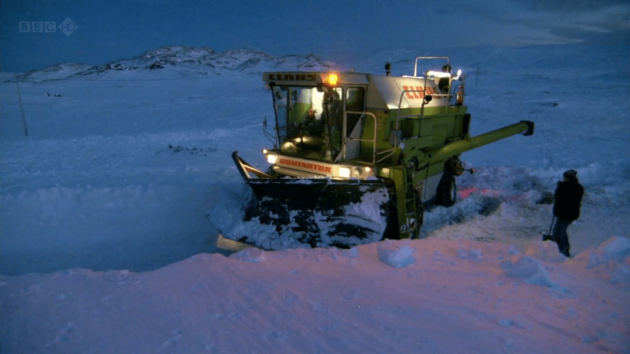 En cette saison votre moissonneuse est au garage ? Les présentateurs de génie de la série Top Gear ont trouvé la solution pour toujours utiliser votre moissonneuse même l’hivers…