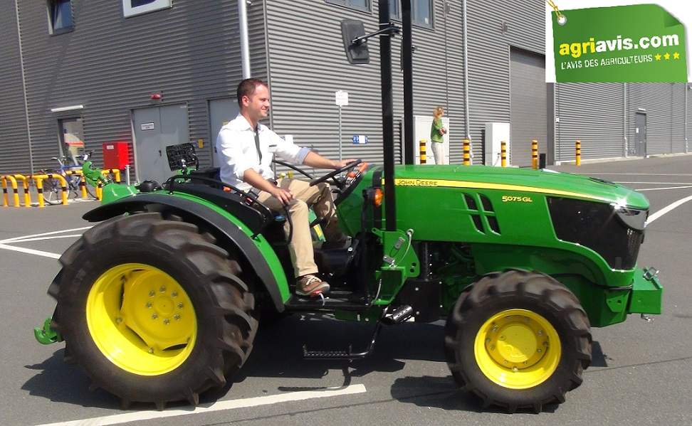 Nouveauté au catalogue John Deere, le tracteur 5GL Basso est disponible dans des versions de 75 ou 85 ch. Equipé d'une plate-forme avec un arceau de sécurité rabattable, sa hauteur maximale peut se limiter à 1.26m (avec des pneumatiques 11.2 R20). Produit par Agritalia, ce tracteur a été conçu pour les cultures spécialisées telles la vigne, l'arboriculture ou le maraichage en serre. Sa largeur maximale varie en fonction de pneumatiques, de 1.4m à 1.70m.