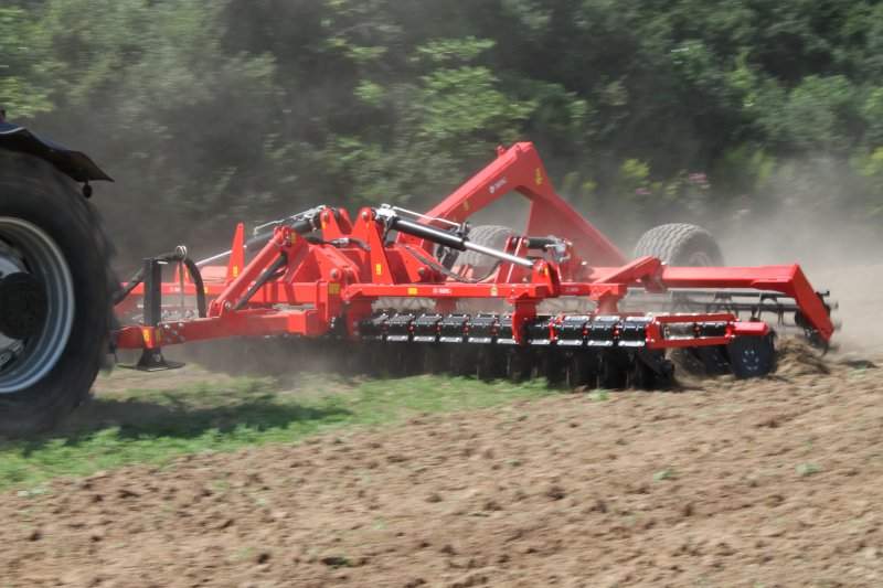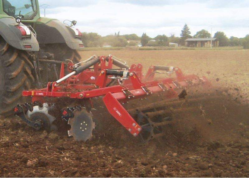 Le déchaumeur à disques indépendants "Jaguar" de la marque AKPIL a un chassis en acier domex, des étançons et disques en ardox.