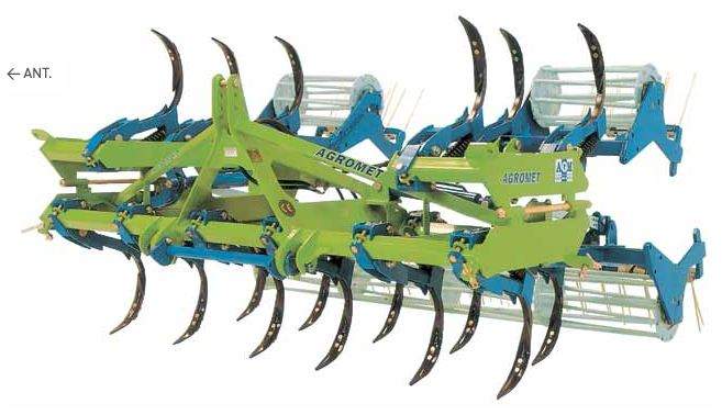 Les chisels Agromet reçoivent une barre d'attelage rapide, un rouleau de terrage et de rappui de 400 mm de diamètre (contrôle de la profondeur de travail par broche).