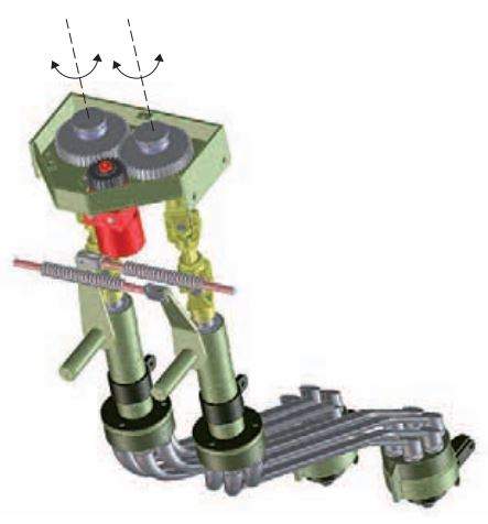 Alors que les carottes sont suspendues par leur feuilles, deux rouleaux composés de 6 couteaux chacun viennent sectionner les feuilles et tirer la racine vers le bas. Les rouleaux sont entraînés par deux pignons, assurant la synchronisation des couteaux. L'opérateur peut inverser le sens de rotation des roules cage depuis la cabine.
