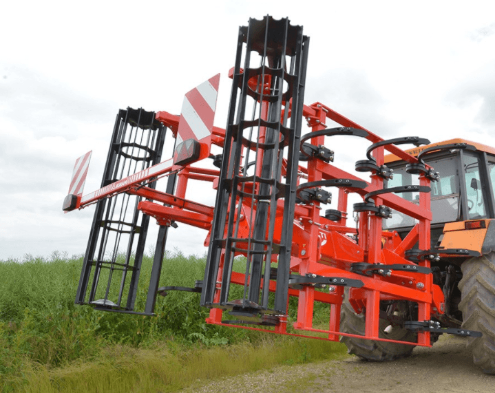 Conçu en poutres IPN qui se prolongent depuis les points de traction du tracteur sans interruption jusqu'à l'arrière du châssis et 3 tubes transversaux de 100/100/8 qui les traversent et qui sont soudés intégralement à celles-ci, pour constituer l'ensemble du châssis. Cette conception permet d'éviter les arrachements de soudure et les déformations des tubes.