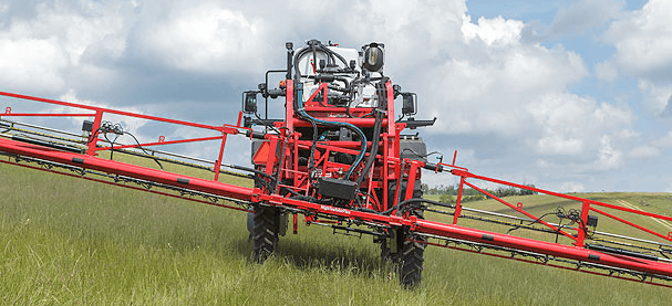 Les cultures croissent en s'élevant vers le ciel. Dans une région plate ou légèrement inclinée, cela ne pose pas de problèmes pour arroser les cultures d'une certaine hauteur. Le pulvérisateur est parallèle aux cultures, et ne risque pas de les endommager. Sur les régions vallonnées, cela cause en revanche des dommages étant donné que le pulvérisateur est parallèle au terrain naturel et non pas aux cultures (a).