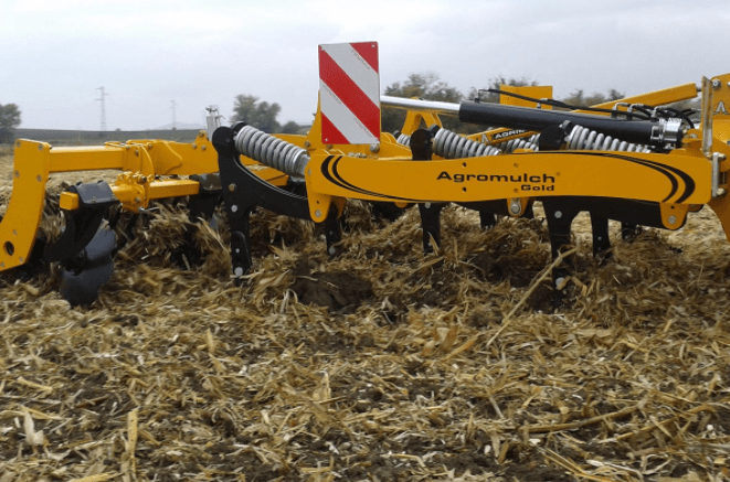 L’Agromulch Gold est un déchaumeur avec 3 rangées de dents à sécurité boulon ou non-stop à ressort.