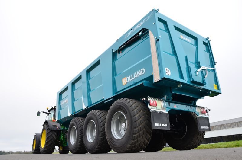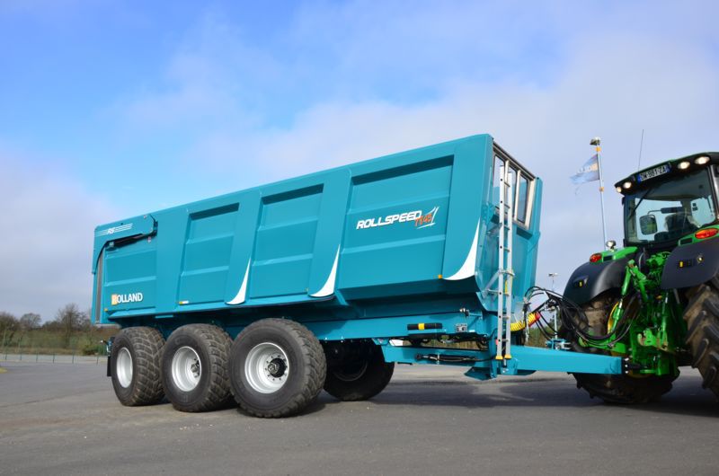 En option, ces véhicules peuvent-être équipés du savoir-faire de haute technologie ROLLAND : flèche à suspension hydraulique, anneau démontable, béquille hydraulique sur distributeur LIFT, suspension hydraulique d'essieu à roues indépendantes ROLLFAST, essieux autopilotés avant et arrière avec attelage facilité des vérins ROLL-LINK, freinage 40km/h, feux full-leds avec option feux haut de porte SECURE, kit ensilage tout aluminium à montage rapide...