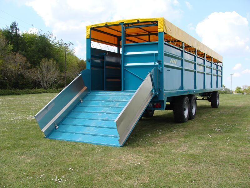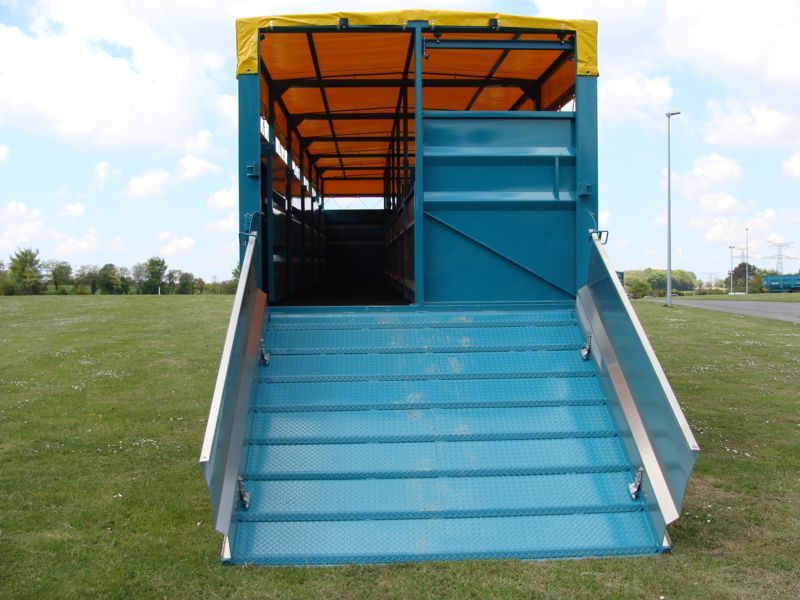 Modèle 12m LCH Tourelle porcs, longueur 12m, largeur intérieure 2m40, hauteur des côtés 140cm, tourelle + tandem, PTAC 26T. Options à définir : types de portillon, résine, type de pont.