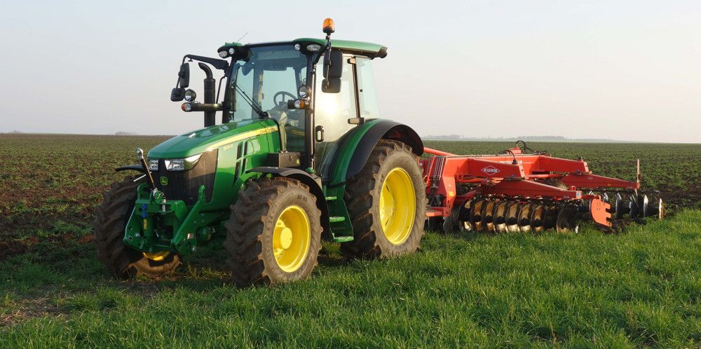 Le tracteur agricole John Deere 5125R est animé par un moteur John Deere PowerTech de 125 chevaux.