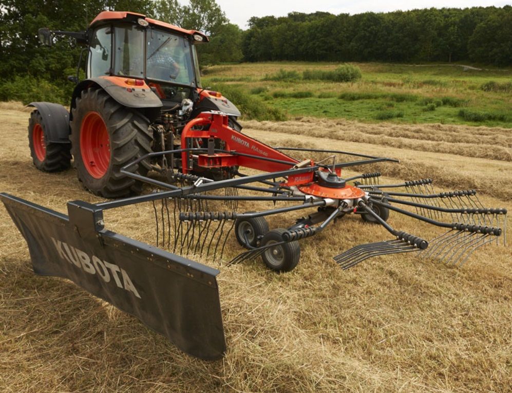La nouvelle génération d’andaineur monorotor Kubota est équipée d’un nouveau boîtier d’entraînement. Les arguments principaux tels que les amortisseurs d’oscillations, l’essieu tandem et le réglage de la hauteur de travail hydraulique équipent ces nouveaux andaineurs.