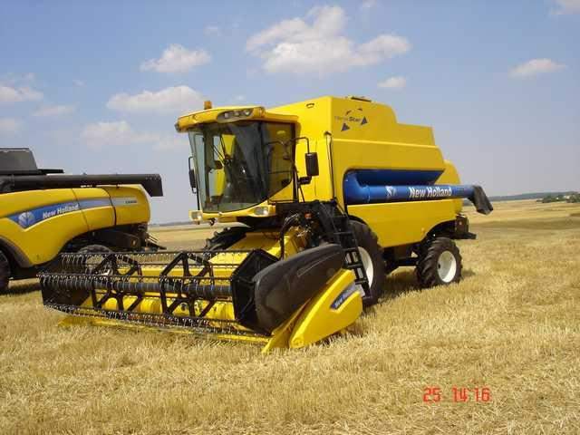 Sur le haut de la trémie des moissonneuses-batteuses New Holland CSX, on peut remarquer le sigle "HarveStar" qui signifie que la technologie de battage se fait par quatre organes rotatifs (batteur, tire-paille, séparateur rotatif et régulateur de flux).