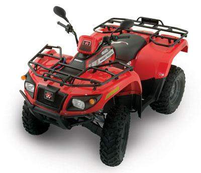 - Moteur : monocylindre 4 temps et refroidissement par air et huile - Cylindrée : 376 cc - Capacité de carburant : 24,6 litres - Transmission : variation continue - 2 gammes - Longueur du quad : 2 150 mm - Empattement : 1270 mm - Garde au sol : 305 mm - Poids à sec : 303 kg - Suspensions avant et arrière: indépendante - Freins avants et arrières: à disques - Capacité de charge avant/ arrière : 45 kg + 91 kg - Capacité de traction : 477 kg