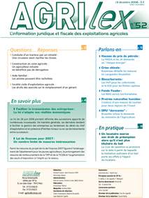Agrilex est une lettre d'information juridique qui traite du droit de la propriété, du fermage, du droit social, du droit du travail, de la fiscalité, des impôts et taxes, des aides et subventions, de la mise aux normes, voisinage, assurances.