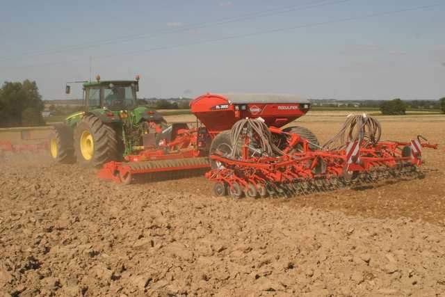 A l'arrière, on peut y atteler la nouvelle rampe de semis en ligne « SeedFlex » ou un semoir de précision 8 rangs. La rampe de semis SeedFlex est dotée de 48 disques semeurs sur parallélogramme avec roues de contrôle de profondeur.