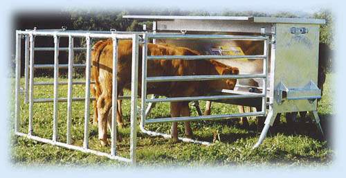 La trémie veaux avec parc conviendrait pour une vingtaine de veaux dans une pâture.