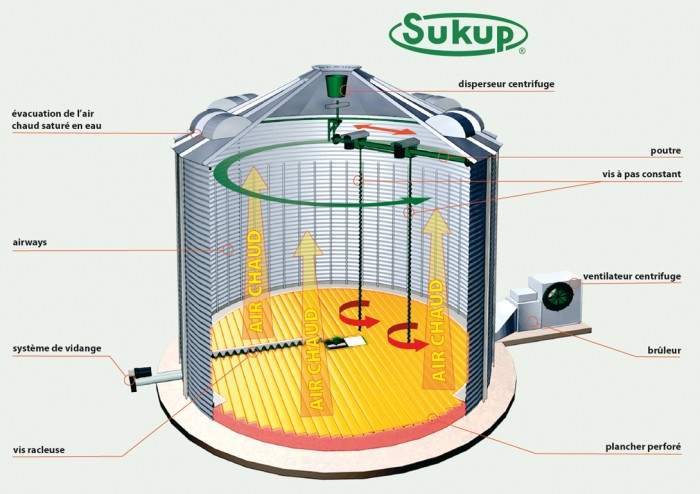 Concept américain de plus de 30 ans, la cellule sécheuse combine le système de brassage Fastir (par vis) et le passage de l’air à basse température insufflé sous le plancher perforé.