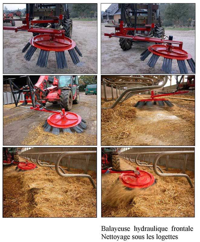 La balayeuse hydraulique frontale des etablissemenets Poget SA permet d'effectuer notamment un balayage sous les logettes.