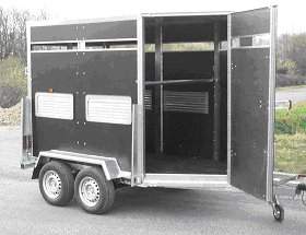 - Bardage bois plastifié marron avec aérateurs sur les 2 côtés Ouverture totale des 2 portes AR à 2 battants avec un petit pont qui se glisse sous le plancher.