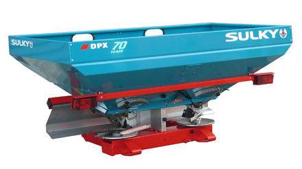 Le Sulky DPX série 70 ans est un distributeur d'engrais "grande largeur" destiné aux exploitations agricoles de polyculture-élevage.