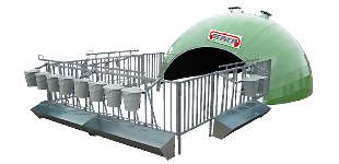 Une utilisation pratique : Un portillon d’accès de part et d’autre du parc permet la sortie rapide du veau sans démontage. L’igloo peut être déplacé facilement à l’aide d’un anneau de levage. Cet aspect pratique permet d’augmenter la fréquence de nettoyage de fumier. L'air est de qualité car constamment renouvelé par 2 cheminées d’extraction en partie haute de l’igloo. L’absence d’air vicié assure aux jeunes bovins une croissance régulière, à l’abri de problèmes gastriques ou pulmonaires. Le parc est constitué de barrières cornadis permettant de contenir et d’alimenter 16 veaux à la fois.