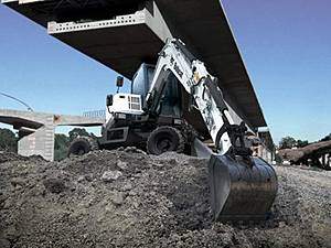 La pelle Bobcat E55W est la première pelle sur pneus commercialisée par Bobcat.