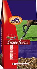 Superforce de la société Cavalor est un aliment haut de gamme, spécifique pour chevaux de compétition actifs qui, en un temps très bref, doivent fournir des efforts très intenses pour des prestations explosives, comme le jumping, cutting, courses sur courtes distances. Lors d'efforts intenses et brefs où l'on ne fait pas appel à l'oxygène (= efforts anaérobies), le corps du cheval utilise surtout des sucres qu'il puise essentiellement dans les céréales de l'alimentation (avoine, orge, blé, maïs). Plus il y a de céréales, plus il y a d'énergie disponible? Non! Il ne faut pas exagérer l'apport de céréales dans l'alimentation au risque de provoquer un excès d'acide lactique et ses conséquences: des problèmes musculaires et digestifs.