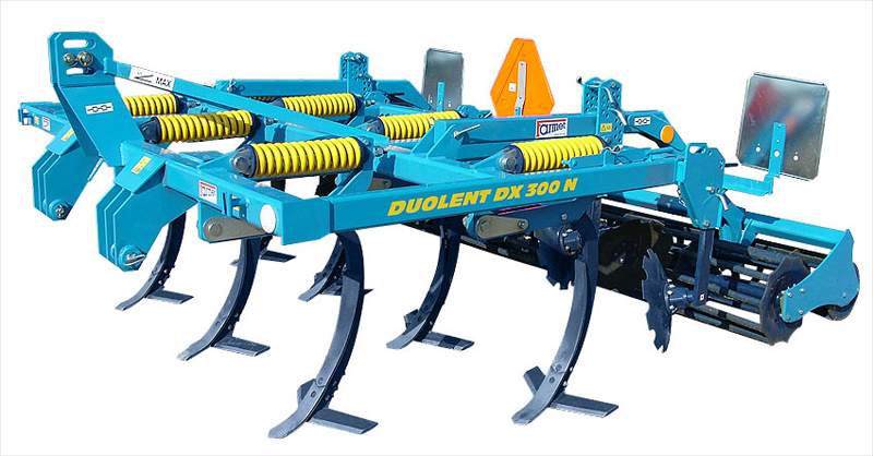Le Duolent DX de la société Farmet est un déchaumeur lourd avec 2 rangées de dents qui ont des ailettes démontables afin de pouvoir travailler jusqu'à 35cm de profondeur.