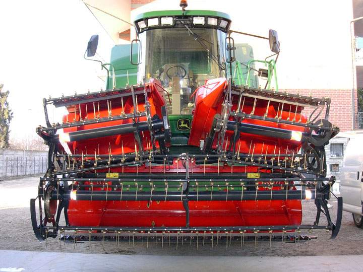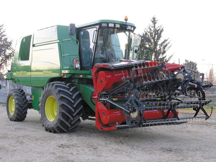 - Possibilité de modifier l'angle d'inclinaison de la plate-forme pour permettre une meilleure pénétration dans les récoltes versées ou de type soja.