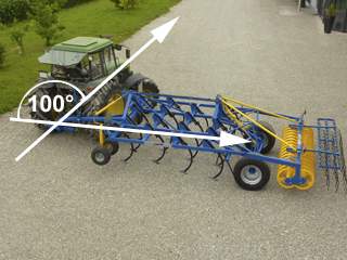 Les Treffler Grubber TG sont attelés aux bras de relevage du tracteur. La rotule permettrait des manoeuvres avec un angle de braquage maxi d'environ 100 degrés (en fonction de tracteur et les roues). Au travail, le contrôle de la profondeur se fait par les 4 roues à l'avant de l'appareil et par le rouleau arrière.