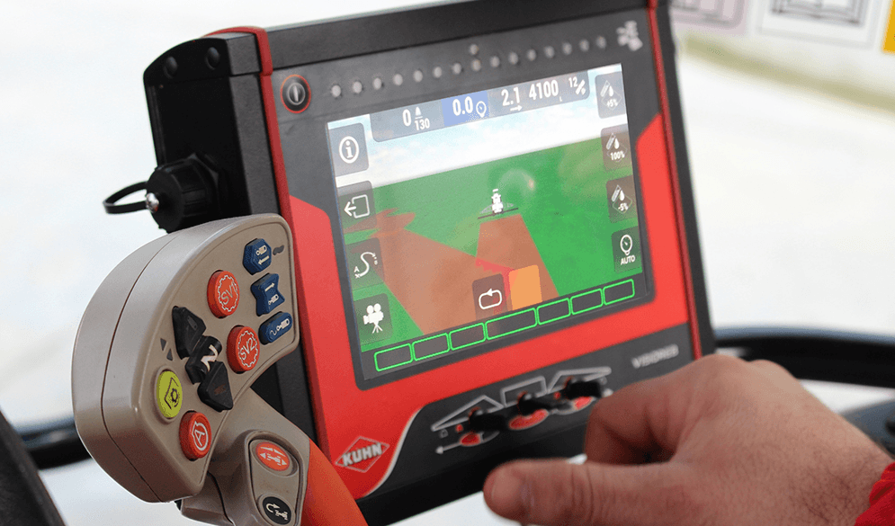 Le Kuhn Metris peut recevoir les équipements facultatifs déjà existants : GPS Section Control, RINS ASSIST (rinçage complet et automatisé du pulvérisateur), essieu suiveur, H-MATIC (contrôle de la hauteur de la rampe en bout de champ)…