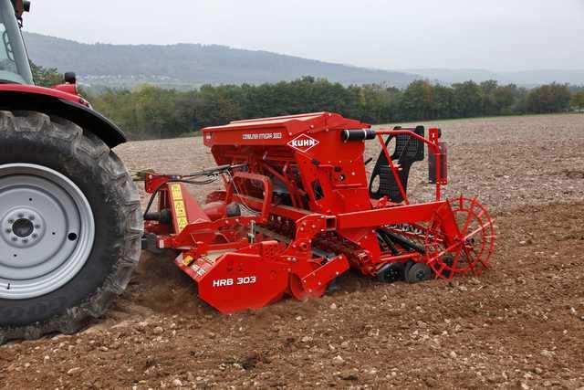 La herse de recouvrement montée sur parallélogramme et réglable en pression ou en allègement assure une finition parfaite du semis.