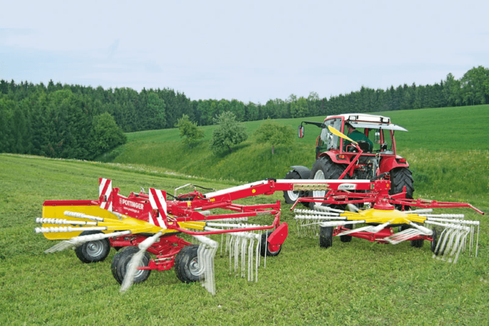 largeur de travail : 4.20 à 6.90 m nombre de rotors : 2 nombre de bras/ rotor : 2x12 largeur au transport : 1.10 m poids : 1550 kg