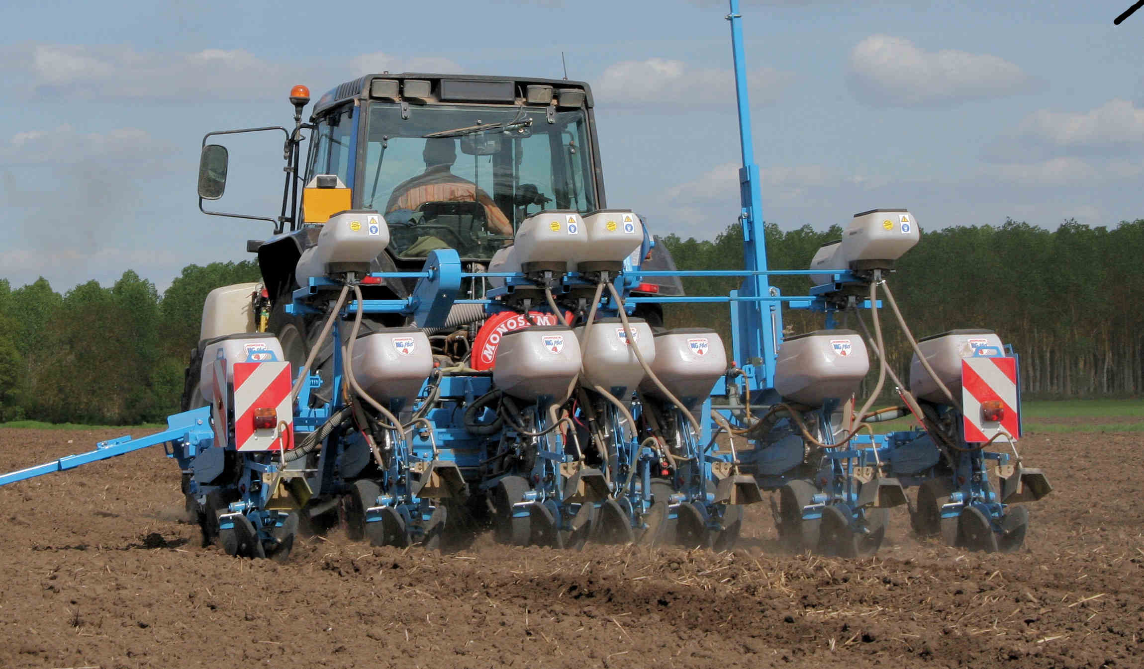 Cette configuration offre ainsi la possibilité de semer, avec le même semoir, différentes cultures (maïs, tournesol, colza, sorgho,…). L’utilisation d’un septième rang pour les inter-rangs étroits permet, dans la plupart des cas, de conserver la même voie de tracteur ; le tracteur enjambant soit 2 rangs pour les inter-rangs larges, soit 3 rangs pour les inter-rangs étroits.
