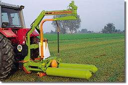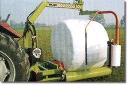 L’enrubanneuse Wolagri FW15 Super dispose d’un bras tournant avec deux rouleaux. Selon Wolagri, elle est particulièrement adaptée pour des balles de 1,20m x 1,20 m.