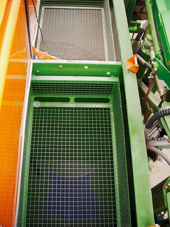 Suite à la sélection de la fonction sur l’ordinateur de bord, il est possible de vider dans un premier temps l’arrière de la trémie, puis ensuite l’avant, afin de maintenir en permanence le poids proche de l’essieu arrière du tracteur et faciliter ainsi la traction.