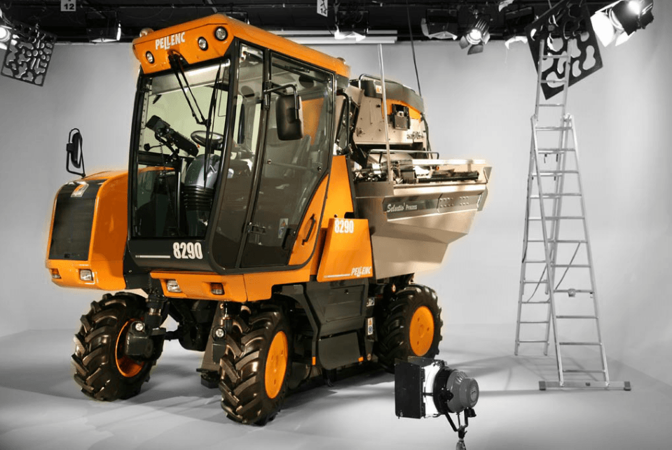 Sur la gamme 8000 des automotrices Pellenc, la tête Activ’ guide automatiquement la tête de récolte quelles que soient sa masse et la position de son centre de gravité ; elle ne s’appuie jamais ni sur le végétal ni sur le palissage pour se positionner indépendamment de la position des roues avants et arrières.