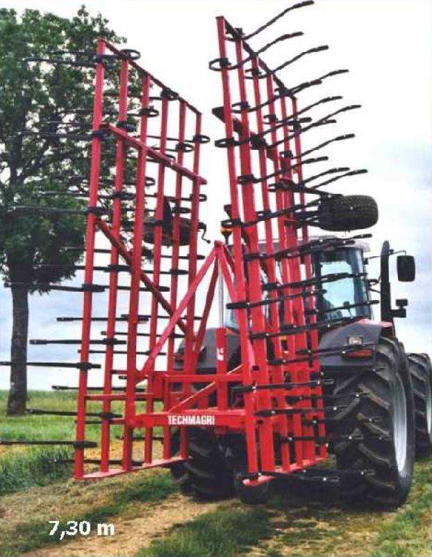Les herses Cultimulch CM 73 et CM 123 (largeur de travail de 7,30 m et 12,30 m) des Ets Techmagri sont conçues pour les agriculteurs adeptes des TCS (Techniques Culturales Simplifiées) et du semis direct.