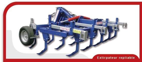 Caractéristiques de l'extirpateur dents acier forgé repliable par vérin de la firme Testas et Roméro:
