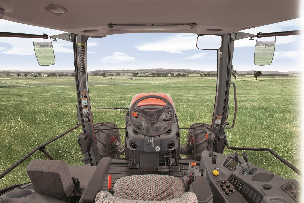 La cabine quatre piliers sans montant central et l'adoption de larges portes transparentes procureraint une excellente visibilité. L’avancement de la cabine, tout comme le toit ouvrant vitré en standard renforceraient ce champ de vision. La vision améliorée vers l'avant et le haut, est rendue possible par le large espace resté libre au-dessus de la tête, suite au nouvel emplacement de l'unité de climatisation sous le siège. Cela facilite l’utilisation au chargeur, Kubota (ou autres).